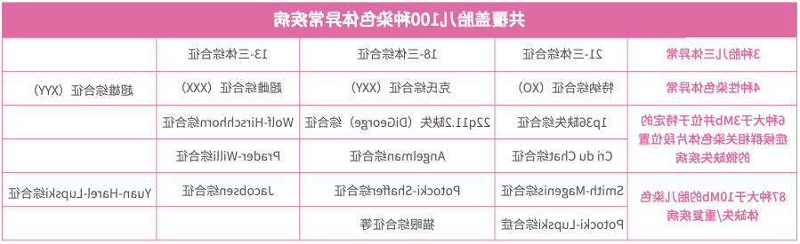 * 对于微小的染色体缺失重复综合征,建议使用核型分析、CMA或高精度测序等分子检测进一步验证,并验证父母染色体缺失重复情况。