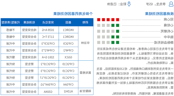 通过对华法林、氯吡格雷、硝酸甘油三种常见血栓治疗药物相关基因进行检测,提高药物的治疗效果,避免药物不良反应,为血栓性疾病个性化用药提供指导。